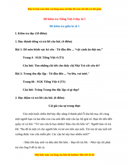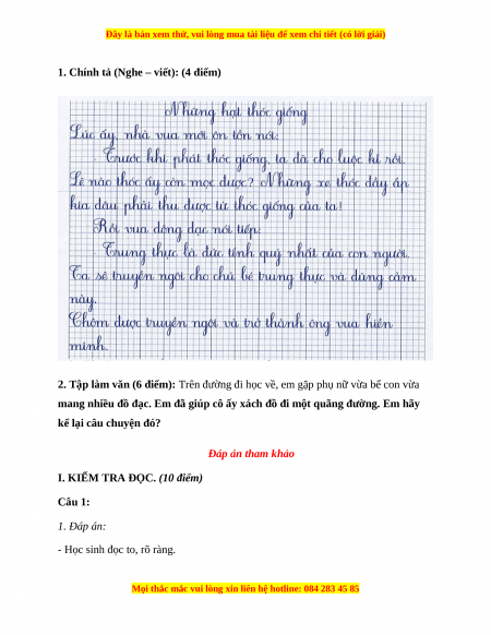 1. Đọc thành tiếng và trả lời câu hỏi. (4 điểm)