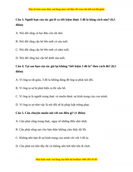 Câu 3. Người bạn của tác giả lẽ ra tiết kiệm được 3 đô la bằng cách nào? (0,5 điểm)