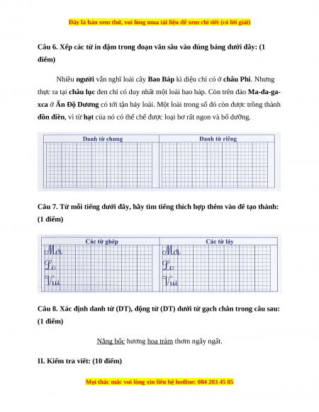 lời đúng nhất hoặc làm theo yêu cầu của mỗi câu hỏi.