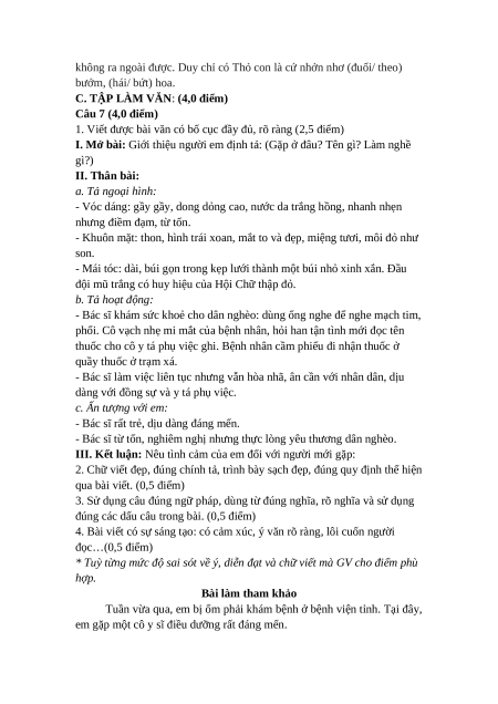 C. TẬP LÀM VĂN: (4,0 điểm) Câu 7 (4,0 điểm)