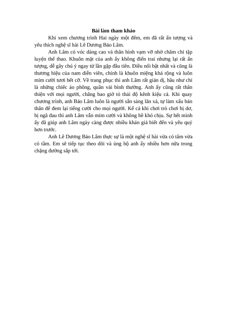 4. Bài viết có sự sáng tạo: có cảm xúc, ý văn rõ ràng, lôi cuốn người đọc…(0,5 điểm)