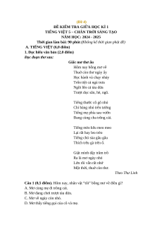 - Tailieugiaovien.com.vn giới thiệu bộ đề giữa kì 1 gồm đầy đủ ma trận và lời giải chi tiết môn Tiếng Việt lớp 5 Chân trời sáng tạo mới nhất năm 2024 nhằm giúp Giáo viên có thêm tài liệu tham khảo ra đề thi Tiếng Việt lớp 5.