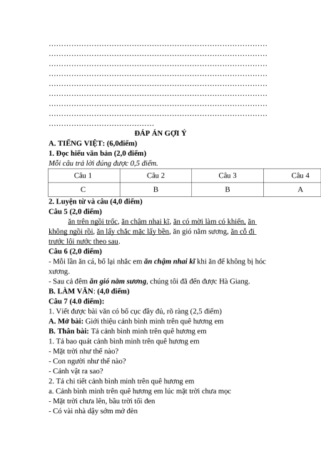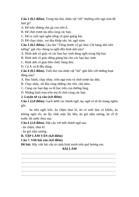 2. Luyện từ và câu (4,0 điểm) Câu 5 (2,0 điểm)