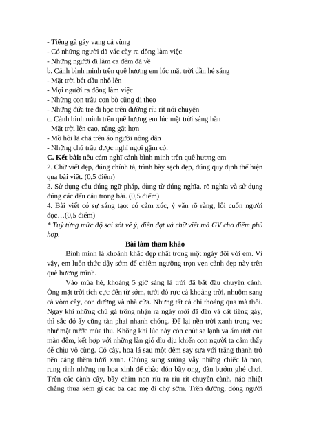 C. Kết bài: nêu cảm nghĩ cảnh bình minh trên quê hương em