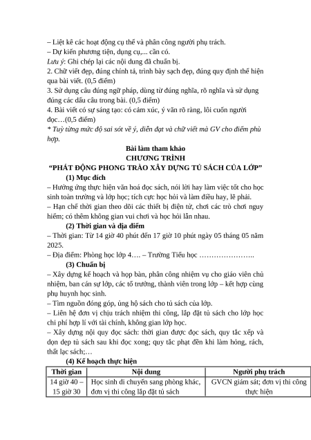 Đề bài: Em hãy viết chương trình cho hoạt động: Phát động phong trào