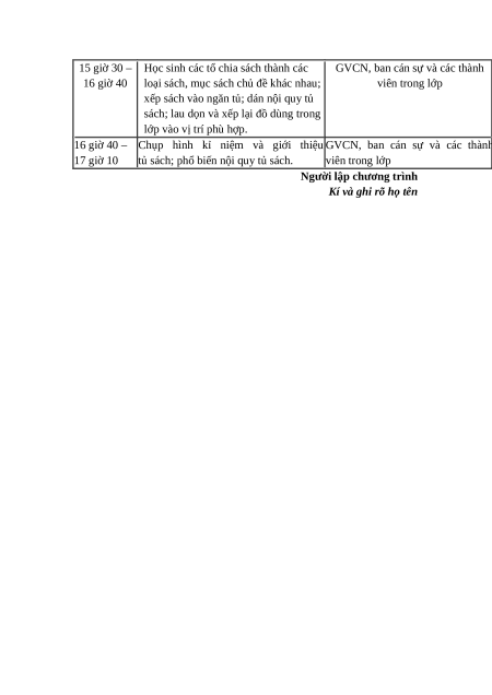 – Xây dựng kế hoạch và họp bàn, phân công nhiệm vụ cho giáo viên chủ