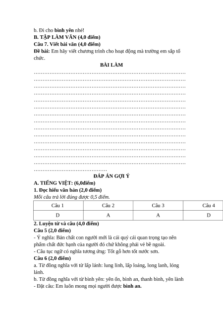 B. LÀM VĂN: (4,0 điểm) Câu 7 (4.0 điểm):