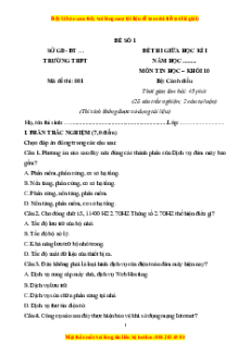 - Tailieugiaovien.com.vn giới thiệu bộ đề thi giữa kì 1 Tin học lớp 10 Cánh diều mới nhất năm 2023 - 2024 nhằm giúp Giáo viên có thêm tài liệu tham khảo ra đề thi Tin học lớp 10.