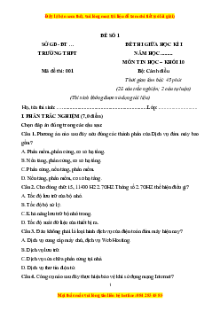 MÔN TIN HỌC – KHỐI 10 Mã đề thi: 001 Bộ: Cánh diều