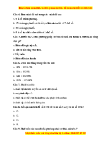Câu 6. Chọn câu đúng trong các câu sau A. 1PB = 1024 GB. B. 1Bit = 1024B. C. 1ZB = 1024PB. D. 1MB = 1024KB.