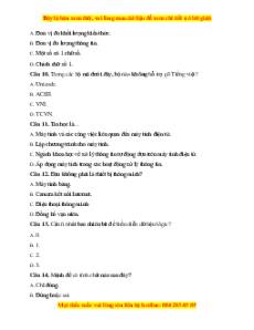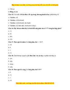 Câu 15. Các kiểu dữ liệu được đề cập trong chương trình tin học phổ thông là? A. Văn bản, số
