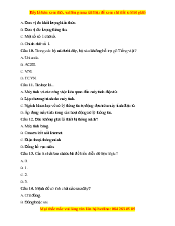 Câu 10. Trong các bộ mã dưới đây, bộ nào không hỗ trợ gõ Tiếng việt? A. Unicode. B. ACSII. C. VNI. D. TCVN.