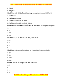 Câu 16. Dãy bit nào dưới đây là biểu diễn nhị phân của số “5” trong hệ thập phân? A. 11. B. 01. C. 001. D. 101.