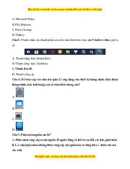 Câu 5. Thanh chứa các thành phần sau trên màn hình làm việc của Windows được gọi là gì: