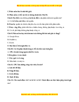Câu 11. CPU làm những công việc chủ yếu nào? A. Lưu trữ dữ liệu. B. Nhập dữ liệu. C. Xử lí dữ liệu. D. Xuất dữ liệu.