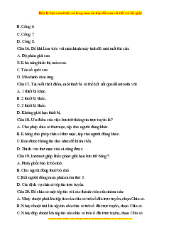 Câu 14. Thiết bị nào là thiết bị vào? A. Chuột, bàn phím. B. Loa, tai nghe. C. Chuột, tai nghe. D. Bàn phím, loa.
