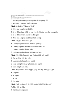 PHẦN I: Câu trắc nghiệm nhiều phương án lựa chọn. Thí sinh trả lời từ câu 1 đến câu 24. Mỗi câu hỏi thí sinh chỉ chọn một phương án. Câu 1. AI là gì?