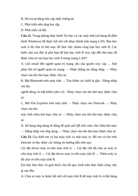 Câu 20. Một bạn học sinh cần thiết lập máy tính của mình thành máy