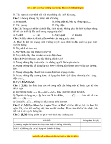 D. Mạng không dây thường được sử dụng cho thiết bị di động như máy tính bảng, điện thoại,… B. TỰ LUẬN (6,5đ)