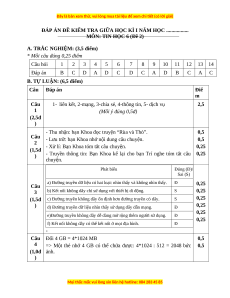 ĐÁP ÁN ĐỀ KIỂM TRA GIỮA HỌC KÌ I NĂM HỌC .................