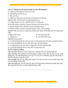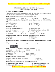 Câu 6: Máy tính gồm có bao nhiêu thành phần thực hiện các hoạt động xử lý thông tin A. 2 B. 3 C. 4 D. 5 Câu 7: