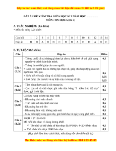 ĐÁP ÁN ĐỀ KIỂM TRA GIỮA HỌC KÌ I NĂM HỌC .................
