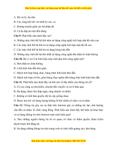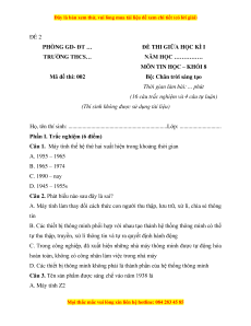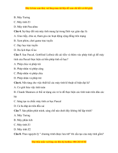 Câu 1. Máy tính thế hệ thứ hai xuất hiện trong khoảng thời gian A. 1955 – 1965 B. 1965 – 1974 C. 1990 – nay D. 1945 – 1955s