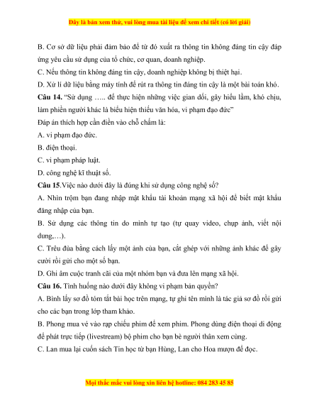 Câu 15.Việc nào dưới đây là đúng khi sử dụng công nghệ số?