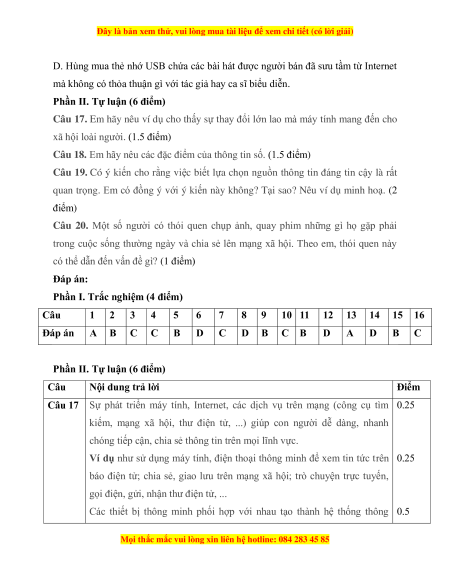 Câu 18. Em hãy nêu các đặc điểm của thông tin số. (1.5 điểm)