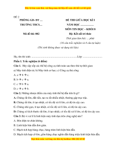 MÔN TIN HỌC – KHỐI 8 Mã đề thi: 002