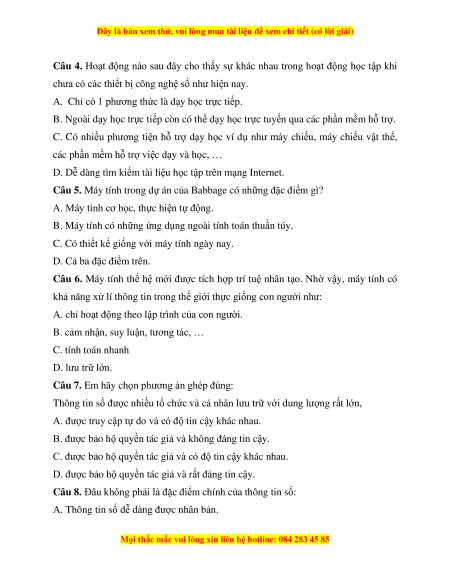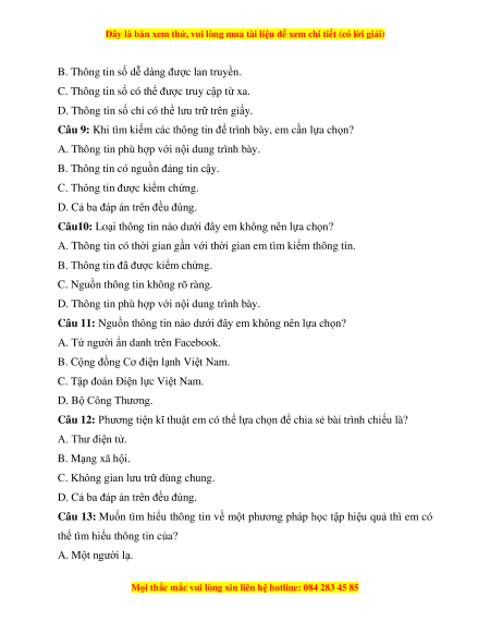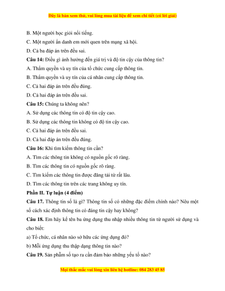 Đây là bản xem thử, vui lòng mua tài liệu để xem chi tiết (có lời giải)
