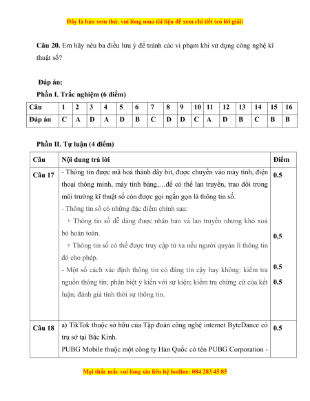 Câu 20. Em hãy nêu ba điều lưu ý để tránh các vi phạm khi sử dụng công nghệ kĩ