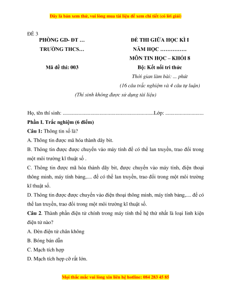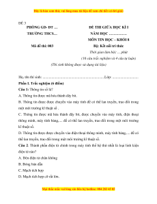 MÔN TIN HỌC – KHỐI 8 Mã đề thi: 003