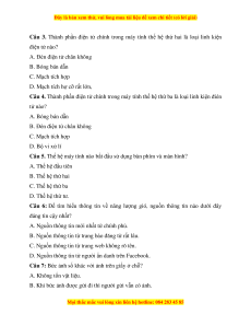 Câu 4. Thành phần điện tử chính trong máy tính thế hệ thứ ba là loại linh kiện đién tử nào? A. Bóng bán dẫn
