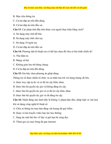 Câu 16: Hành động nào dưới đây là không vi phạm đạo đức, pháp luật và văn hoá
