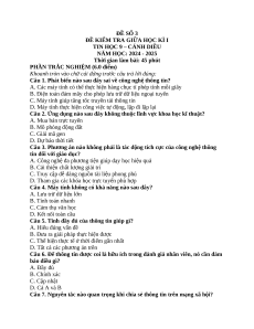 Câu 2. Ứng dụng nào sau đây không thuộc lĩnh vực khoa học kĩ thuật? A. Mua bán trực tuyến B. Mô phỏng động đất C. Giải mã gen D. Dự báo thời tiết