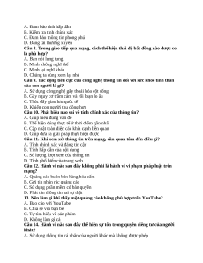 Câu 12. Hành vi nào sau đây không phải là hành vi vi phạm pháp luật trên mạng?