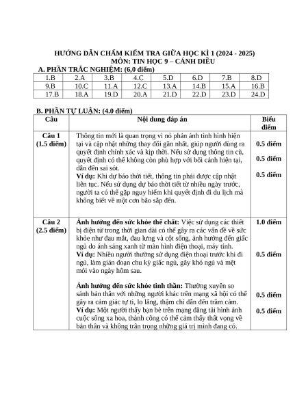 - Tailieugiaovien.com.vn giới thiệu bộ đề giữa kì 1 gồm đầy đủ ma trận và lời giải chi tiết môn Tin học 9 Cánh diều mới nhất năm 2024 nhằm giúp Giáo viên có thêm tài liệu tham khảo ra đề thi Tin học 9.