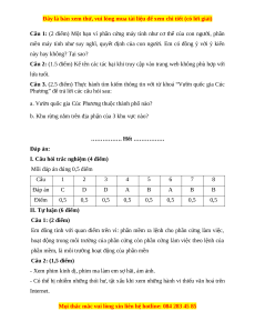 Mỗi đáp án đúng 0,5 điểm Câu 1 2 3 4 5 6 7 8 Đáp án C D D A B A B B Điểm 0,5 0,5 0,5 0,5 0,5 0,5 0,5 0,5