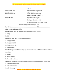 MÔN TIN HỌC – KHỐI 4 Mã đề thi: 004