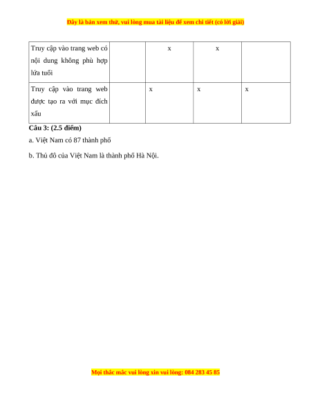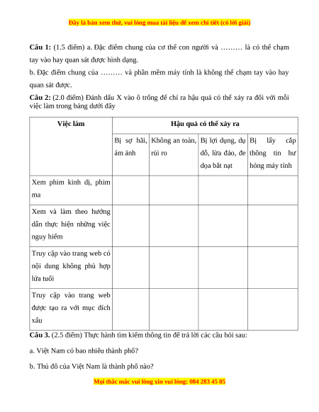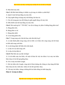 Câu 3. (2.5 điểm) Thực hành tìm kiếm thông tin để trả lời các câu hỏi sau: