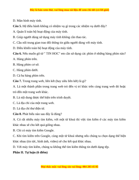 Đây là bản xem thử, vui lòng mua tài liệu để xem chi tiết (có lời giải)