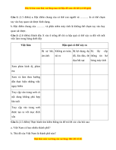 b. Đặc điểm chung hệ điều hành và phần mềm máy tính là không thể chạm tay vào hay quan sát được Câu 2: (2.0 điểm) Việc làm