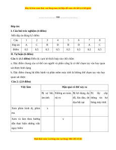 ………………. Hết ………………. Đáp án: