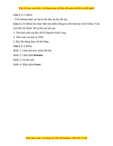 Câu 2: (3.0 điểm) Em thực hiện tìm kiếm thông tin trên Internet với từ khóa “Chủ