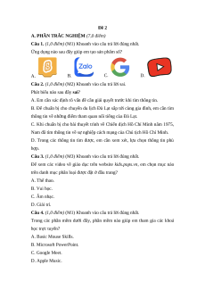 Câu 7. (1,0 điểm) (M1) Phần mềm Duolingo giúp em A. tạo sản phẩm số. B. giải trí. C. trao đổi thông tin. D. học tập.