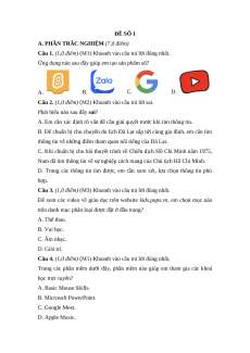 Câu 7. (1,0 điểm) (M1) Phần mềm Duolingo giúp em A. tạo sản phẩm số. B. giải trí. C. trao đổi thông tin. D. học tập.