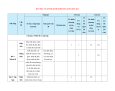 BẢN ĐẶC TẢ KĨ THUẬT ĐỀ KIỂM TRA GIỮA HỌC KÌ I Năng lực Số ý/câu Câu hỏi TN TN TN nhiều TN nhiều TN trả TN trả Cấp phương phương Nội dung