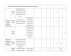 Chương II. Bất phương trình và hệ bất phương trình bậc nhất hai ẩn Số lệnh hỏi 3 3 2 1 9 Số điểm 0,75 0,75 0,75 0,5 2,75 4, 5 6 2d Câu số/Phần 2a 2b, 2c 2 3 (I, II, III) I, II I, II II, III III Thành tố NL TD QGVĐ GQVĐ MHH