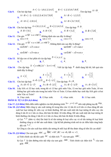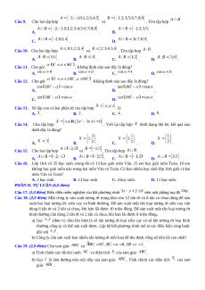 Câu 10. Cho hai tập hợp và . Tìm tập hợp . A. . B. . C. . D. . Câu 11. Cho góc